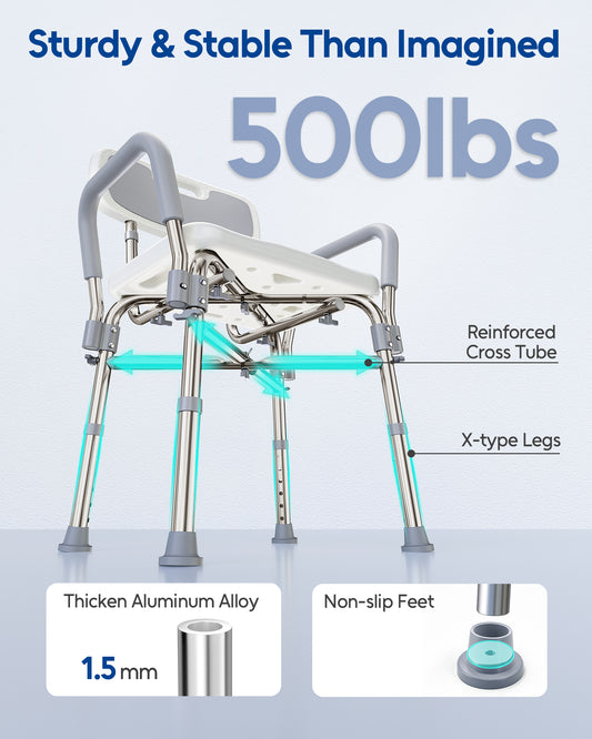 Shower Chair for Inside Shower with Arms and Back, 500lbs Capacity Height Adjustable Shower Seat with Thickened Frame for Seniors, Elderly and Disabled , FSA/HSA Eligible